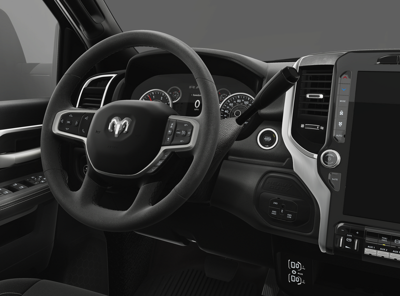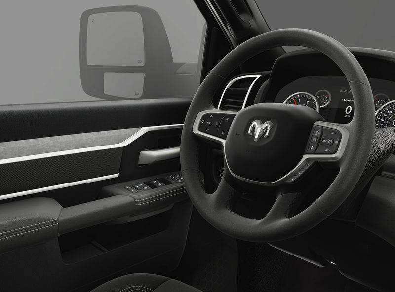 ENGINE: 6.7L I6 CUMMINS HO TURBO DIESEL Selective Catalytic Reduction (Urea), Dual 730 Amp Maintenance Free Batteries, Cummins Turbo Diesel Badge, Heavy Duty Engine Cooling, Diesel Exhaust Brake, Supplemental Heater, 3.42 Axle Ratio, Front Bumper Sight Shields, Capless Fuel Fill w/o Discriminator, GVWR: 11,040 lbs, BIG HORN LEVEL 1 PLUS EQUIPMENT GROUP Emergency Vehicle Alert System (EVAS), Glove Box Lamp, 12 Touchscreen Display, Auto Power-Folding Mirrors, Footwell Courtesy Lamp, Anti-Spin Differential Rear Axle, MOPAR Deployable Bed Step, Alexa Built-In, Forward & Reverse Utility Lights, Locking Lower Glove Box, Remote Start System, 9 Alpine Speakers w/Subwoofer, Dual Glove Boxes, 2nd Row In Floor Storage Bins, Rear View Auto Dim Mirror, Rear Dome w/On/Off Switch Lamp, LED Bed Lighting, GPS Navigation, SiriusXM w/360L, Connected Travel & Traffic Services, Foam Bottle Insert (Door Trim Panel), Big Horn IP Badge, Off-Road Info Pages, Trailer Tow Pages, HD Radio, Radio: Uconnect 5 Nav w/12.0 Display, Power Heated Folding Telescopic Mirrors, Steering Wheel Mounted Audio Controls, Air Conditioning ATC, TOWING TECHNOLOGY GROUP CTR Stop Lamp w/Cargo View Camera, Surround View Camera System, Trailer Tire Pressure Monitoring System, Blind Spot & Cross Path Detection, LED Tail Lamps, Red Tail Lamp Bezels, Trailer Reverse Guidance, NIGHT EDITION Gloss Black Nostrils/Mic Black Grille, Tires: LT285/60R20E OWL On/Off Road, Black Exterior Truck Badging, Wheels: 20 x 8.0 Black Painted Aluminum, Body Color Grille Surround, Black Interior Accents, Black Wheel Center Hub, Painted Front Bumper, Painted Rear Bumper, HEATED SEATS & WHEEL GROUP Heated Steering Wheel, Heated Front Seats, MOPAR FRONT & REAR RUBBER FLOOR MATS