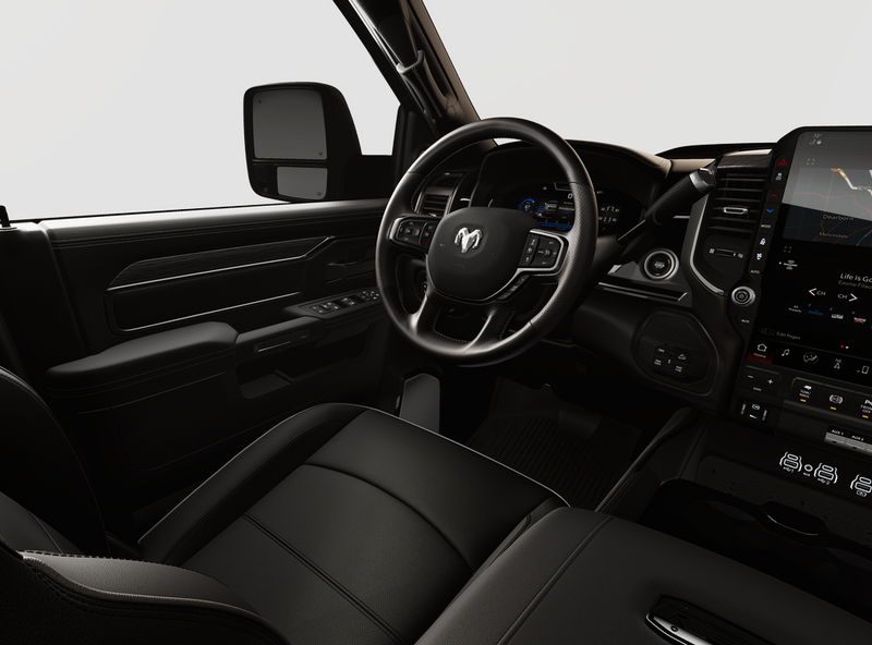 ENGINE: 6.7L I6 CUMMINS HO TURBO DIESEL Selective Catalytic Reduction (Urea), Dual 730 Amp Maintenance Free Batteries, Cummins Turbo Diesel Badge, Heavy Duty Engine Cooling, Diesel Exhaust Brake, Supplemental Heater, 3.42 Axle Ratio, Front Bumper Sight Shields, Fuel Tank Brush Guard, Capless Fuel Fill w/o Discriminator, GVWR: 11,040 lbs, REBEL LEVEL 2 EQUIPMENT GROUP Power Adjustable Pedals w/Memory, Front Passenger Interactive Display, Power Deployable Running Boards, MOPAR Deployable Bed Step, Premium Overhead Console, Leather Wrapped Shift Control, 17 Speaker harman/kardon Premium Sound, LED Interior Lighting, LED Dome Lamp w/On/Off Switch, Universal Garage Door Opener, Sun Visors w/Illuminated Vanity Mirrors, CTR Stop Lamp w/Cargo View Camera, Rain Sensitive Windshield Wipers, LED Bed Lighting, Body Color Door Handles, Overhead LED Lamps, Auto Dim Exterior Mirror, Leather Wrapped Grab Handle, 14.4 Touchscreen Display, Power Heated Fold Telescopic Mirrors w/Memory, Sport Performance Hood, Radio: Uconnect 5 Nav w/14.4 Display, MOPAR Spray In Bedliner, Front Door Locks 2-Door Passive Entry, Auto High Beam Headlamp, SAFETY GROUP Active Lane Management System, Auto High Beam Headlamp Control, Rain Sensitive Windshield Wipers, Drowsy Driver Detection, Traffic Sign Recognition, Adaptive Steering System, TOWING TECHNOLOGY GROUP Surround View Camera System, Trailer Tire Pressure Monitoring System, Trailer Reverse Guidance, POWER SUNROOF, TOW-MODE DIGITAL REARVIEW MIRROR PACKAGE Digital Rearview Mirror, Tow-Mode Camera (Wired), TRANSMISSION: 8-SPEED TORQUEFLITE HD AUTOMATIC.