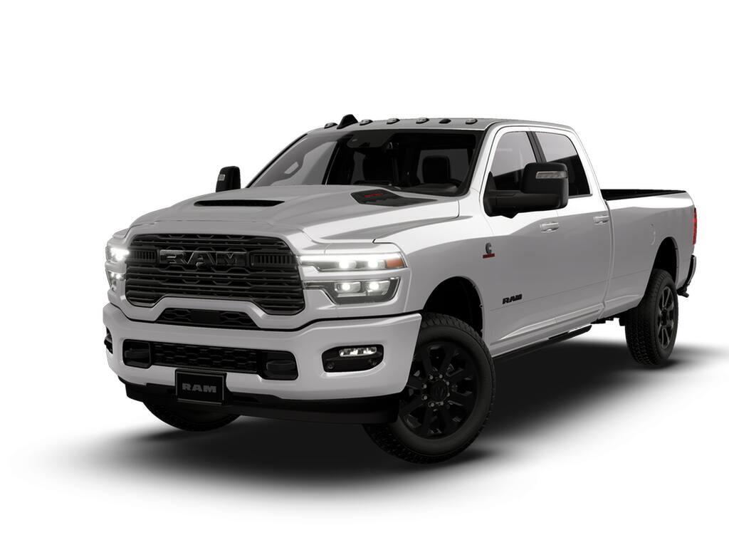 ENGINE: 6.7L I6 CUMMINS HO TURBO DIESEL Selective Catalytic Reduction (Urea), Dual 730 Amp Maintenance Free Batteries, Cummins Turbo Diesel Badge, Heavy Duty Engine Cooling, Diesel Exhaust Brake, Supplemental Heater, 3.42 Axle Ratio, Front Bumper Sight Shields, Capless Fuel Fill w/o Discriminator, GVWR: 11,040 lbs, LARAMIE LEVEL 2 PLUS EQUIPMENT GROUP Power Adjustable Pedals w/Memory, Power Deployable Running Boards, Anti-Spin Differential Rear Axle, Drowsy Driver Detection, MOPAR Deployable Bed Step, Active Lane Management System, Remote Tailgate Release, 17 Speaker harman/kardon Premium Sound, 2nd Row In Floor Storage Bins, CTR Stop Lamp w/Cargo View Camera, Rain Sensitive Windshield Wipers, LED Bed Lighting, Traffic Sign Recognition, Adaptive Steering System, Auto Dim Exterior Mirror, Foam Bottle Insert (Door Trim Panel), 14.4 Touchscreen Display, Power Heated Fold Telescopic Mirrors w/Memory, Radio: Uconnect 5 Nav w/14.4 Display, MOPAR Spray In Bedliner, Auto High Beam Headlamp Control, Exterior Mirrors w/Memory, Auto Dim Exterior Passenger Mirror, Auto Adjust In Reverse Exterior Mirrors, NIGHT EDITION Tires: LT285/60R20E OWL On/Off Road, Black Exterior Truck Badging, Wheels: 20 x 8.0 Black Painted Aluminum, Gloss Black Grille Billets/Accents, Body Color Grille-Surround, Sport Performance Hood, Black Exterior Mirrors, TOWING TECHNOLOGY GROUP Surround View Camera System, Trailer Tire Pressure Monitoring System, Trailer Reverse Guidance, TOW-MODE DIGITAL REARVIEW MIRROR PACKAGE Digital Rearview Mirror, Tow-Mode Camera (Wired), TRANSMISSION: 8-SPEED TORQUEFLITE HD AUTOMATIC, BLACK, LEATHER TRIMMED BUCKET SEATS Bucket Seats, Dual Wireless Charging Pad, Ventilated Front Seats, Radio/Driver Seat/Mirrors/Pedals Memory, Full Length Upgraded Floor Console.