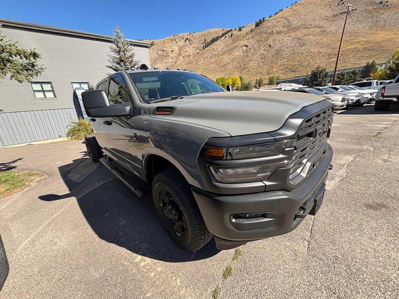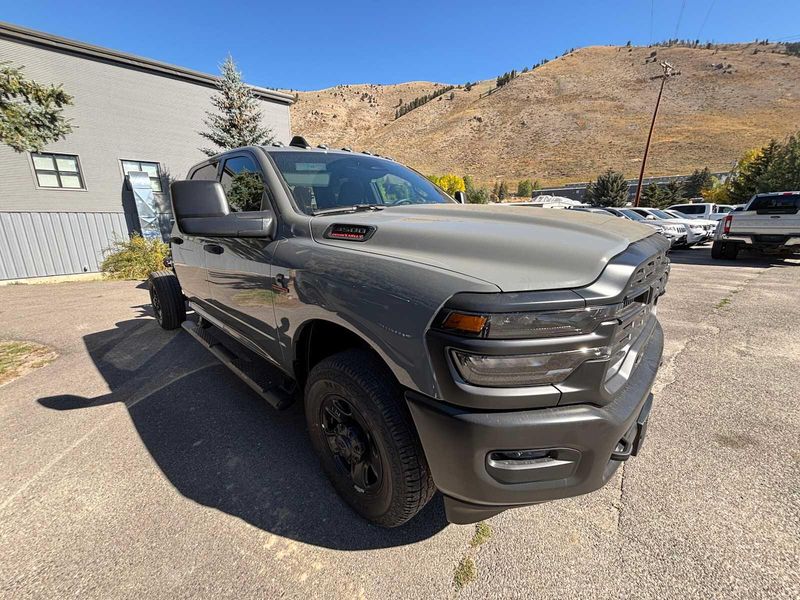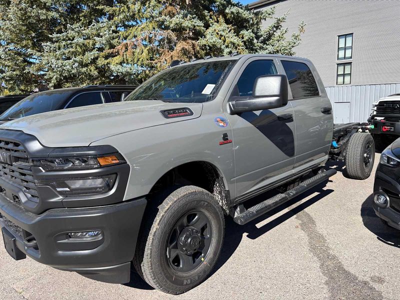 Ceramic Gray Clearcoat exterior and Black interior. Keyless Start, Onboard Communications System, iPod/MP3 Input, 4x4, Turbo Charged, BLACK, CLOTH 40/20/40 BENCH SEAT, BLACK TUBULAR SIDE STEPS, ENGINE: 6.7L I6 CUMMINS TURBO DIESEL, TRANSMISSION: 8-SPEED TORQUEFLITE HD.. Satellite Radio. Warranty 10 yrs/100k Miles - Drivetrain Warranty;
