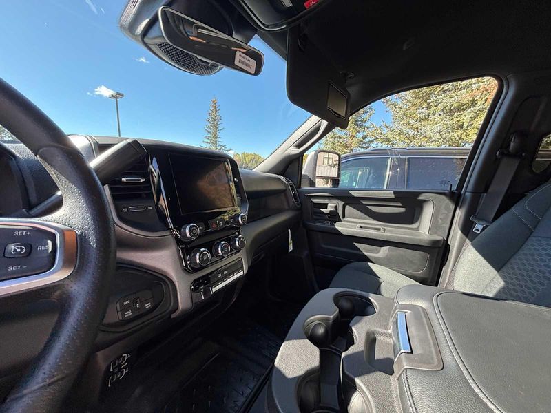 ENGINE: 6.7L I6 CUMMINS TURBO DIESEL Selective Catalytic Reduction (Urea), Dual 730 Amp Maintenance Free Batteries, Clean Idle Emissions Label, Cummins Turbo Diesel Badge, Current Generation Engine Controller, Smart Diesel Exhaust Brake, Supplemental Heater, 3.42 Axle Ratio, B-20 Bio Diesel Capability, TRANSMISSION: 8-SPEED TORQUEFLITE HD AUTOMATIC (DFM) Transfer Case Skid Plate Shield, Power Take-Off Right/Left, BLACK TUBULAR SIDE STEPS, BLACK, CLOTH 40/20/40 BENCH SEAT 4 Way Front Headrests.
