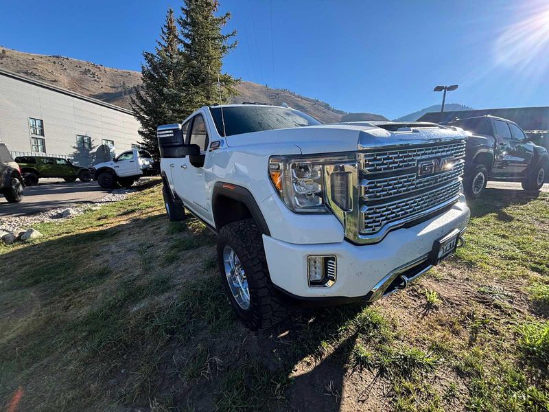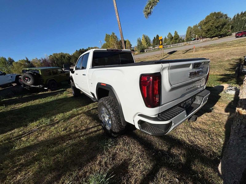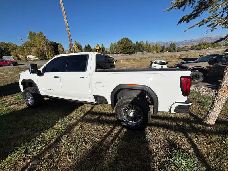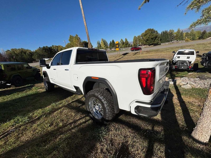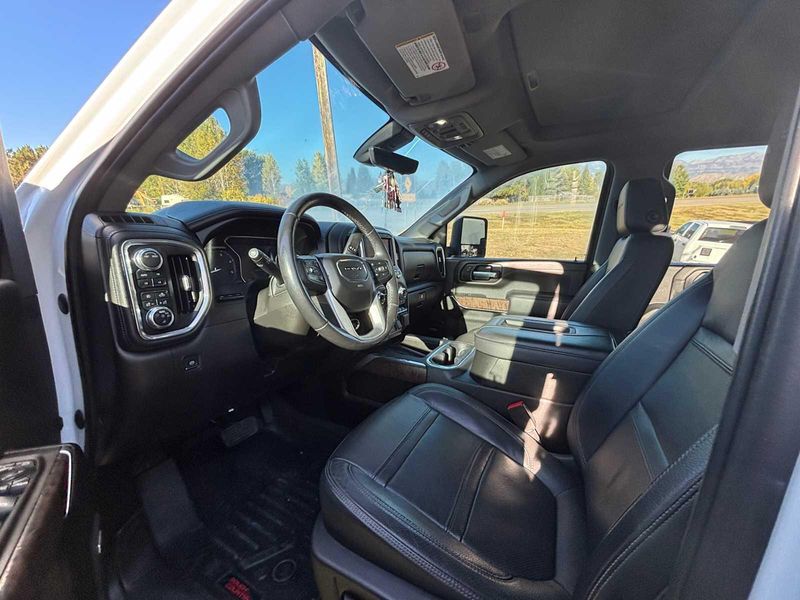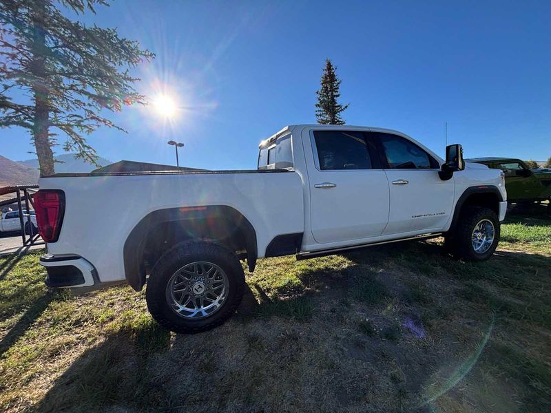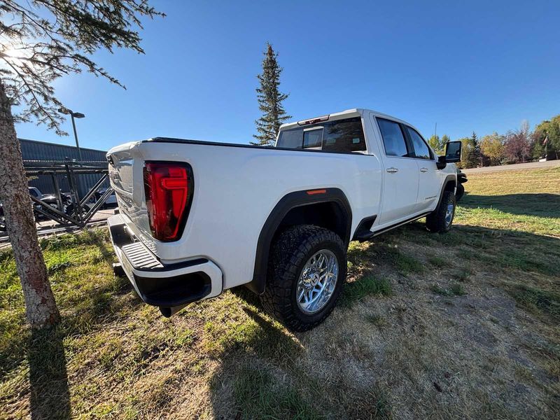 Summit White exterior and Jet Black interior. Heated/Cooled Leather Seats, Navigation, Trailer Hitch, Heated Rear Seat, 4x4, Turbo Charged, Alloy Wheels, Bed Liner, AUDIO SYSTEM, PREMIUM GMC INFOTAINMENT SYSTEM WITH NAVIGATION AND 8 DIAGONAL COLOR TOUCH-SCREEN, GOOSENECK / 5TH WHEEL PREP PACKAGE, TRANSMISSION, ALLISON 10-SPEED AUTOMA... ENGINE, DURAMAX 6.6L TURBO-DIESEL V8... AUDIO SYSTEM, PREMIUM GMC INFOTAINMEN... TECHNOLOGY PACKAGE, ASSIST STEPS, POWER-RETRACTABLE, ENGINE, DURAMAX 6.6L TURBO-DIESEL V8, B20-DIESEL COMPATIBLE.