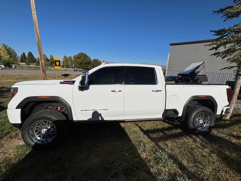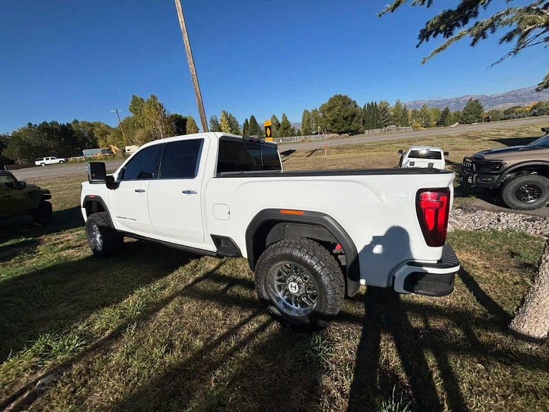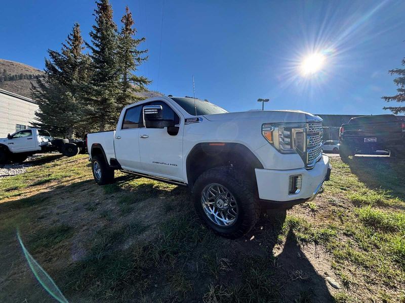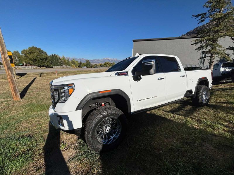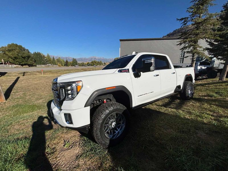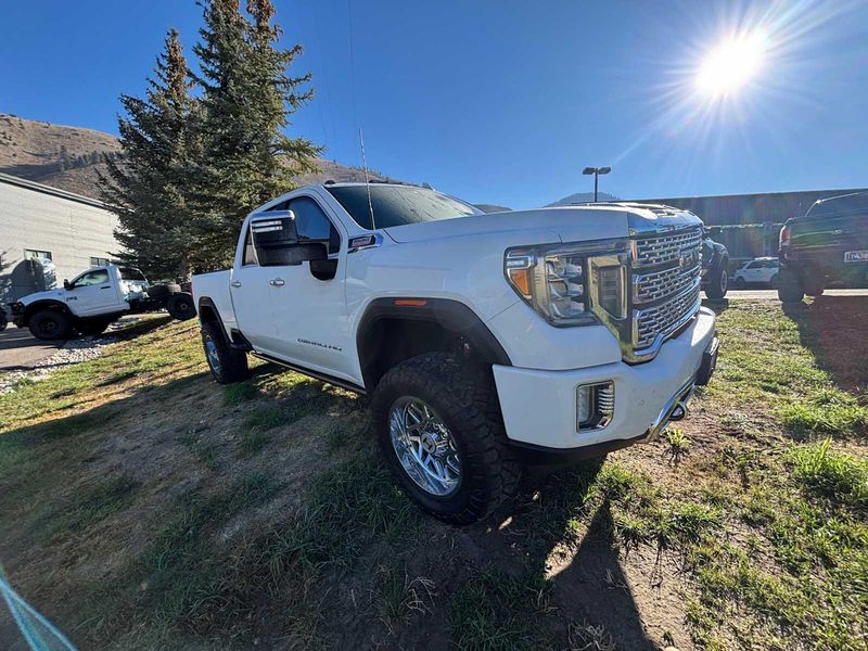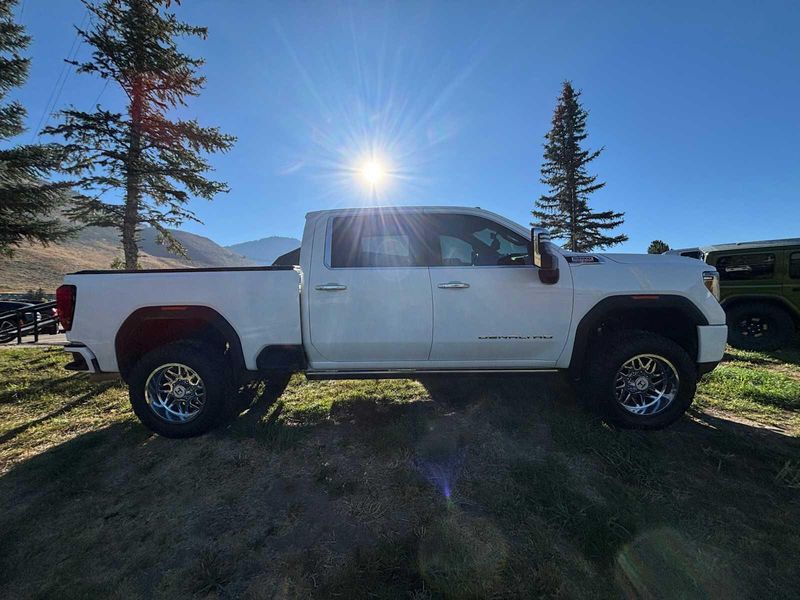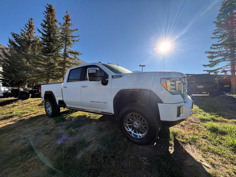 Summit White exterior and Jet Black interior. Heated/Cooled Leather Seats, Navigation, Trailer Hitch, Heated Rear Seat, 4x4, Turbo Charged, Alloy Wheels, Bed Liner, AUDIO SYSTEM, PREMIUM GMC INFOTAINMENT SYSTEM WITH NAVIGATION AND 8 DIAGONAL COLOR TOUCH-SCREEN, GOOSENECK / 5TH WHEEL PREP PACKAGE, TRANSMISSION, ALLISON 10-SPEED AUTOMA... ENGINE, DURAMAX 6.6L TURBO-DIESEL V8... AUDIO SYSTEM, PREMIUM GMC INFOTAINMEN... TECHNOLOGY PACKAGE, ASSIST STEPS, POWER-RETRACTABLE, ENGINE, DURAMAX 6.6L TURBO-DIESEL V8, B20-DIESEL COMPATIBLE.