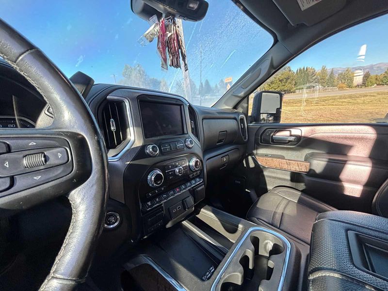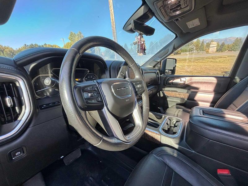 ENGINE, DURAMAX 6.6L TURBO-DIESEL V8, B20-DIESEL COMPATIBLE (445 hp [332 kW] @ 2800 rpm, 910 lb-ft of torque [1220 Nm] @ 1600 rpm) (Includes (K05) engine block heater.), TECHNOLOGY PACKAGE includes (DRZ) Rear Camera Mirror and (UV6) Multi-color 15 Diagonal Head-Up Display, ASSIST STEPS, POWER-RETRACTABLE with LED perimeter lighting, GOOSENECK / 5TH WHEEL PREP PACKAGE -- Hitch platform to accept Gooseneck or 5th Wheel hitch. Includes hitch platform with tray to accept ball, stamped bed holes with removable caps installed and bed mounted 7-pin trailer harness (similar to UY2 harness). AUDIO SYSTEM, PREMIUM GMC INFOTAINMENT SYSTEM WITH NAVIGATION AND 8 DIAGONAL COLOR TOUCH-SCREEN includes multi-touch display, AM/FM stereo, Bluetooth streaming audio for music and most phones; featuring wireless Android Auto and Apple CarPlay capability for compatible phones, advanced voice recognition, in-vehicle apps, personalized profiles for infotainment and vehicle settings. Includes greater memory. (STD) (Includes (PZ8) Hitch Guidance with hitch view.), TRANSMISSION, ALLISON 10-SPEED AUTOMATIC.